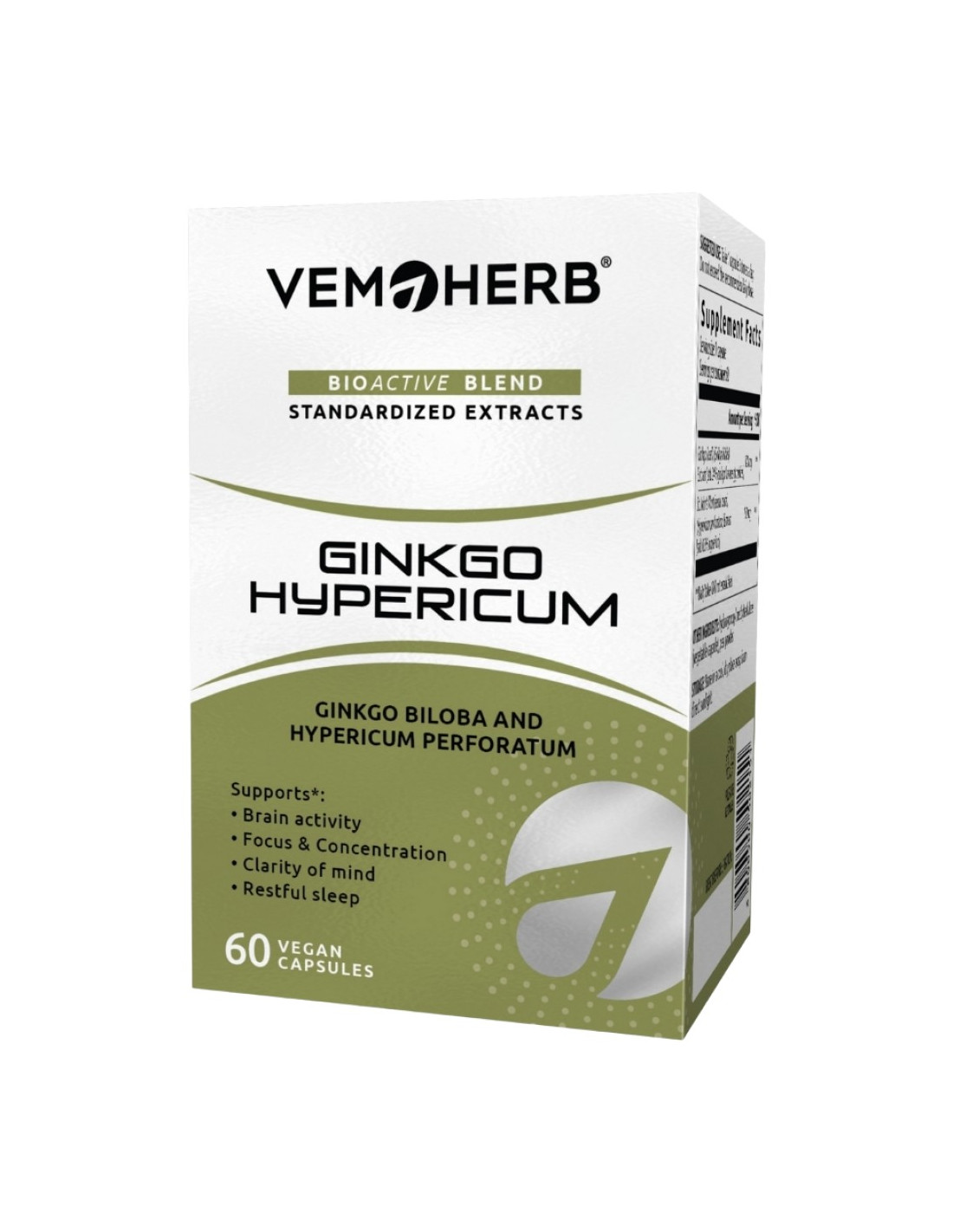 Хранителната добавка ВемоХерб ® Ginkgo Hypericum включва стандартизирани сухи екстракт от листа на Ginkgo biloba и надземна маса на Hypericum perforatum с високо съдържание на активни компоненти. Подбраното съотношение 3:2 е съобразено с количеството хиперицин – 0,5 % в екстракта и количеството гинкгофлавон гликозиди – 24 %, изчислени като сума кверцетин, кемпферол и изорамнетин.Хиперицинът е производно на антрахинона, което блокира действието на моноаминооксидазата, участва в мозъчната обмяна на веществата и влияе върху пренасянето на нервните импулси. Това спомага за поддържане нивото на серотонин в централната нервна система и подобрява дългосрочно душевната кондиция. Чистият хиперицин изолиран самостоятелно притежава по-слабо изразени антидепресивни свойства, отколкото когато е в комбинация с другите растителни съставки – флавоноиди, ксантогенати и дъбилни вещества.Сухият екстракт от Жълт кантарион представляващ смес от активните вещества на растението се определя като растителен антидот с по-силно изразени свойства на антидепресант и ефект на приложение при леки до умерено изразени депресии и нервни състояния. Установява се, че това е резултат от синергичен ефект между хиперицин и флавоноиди при инхибиране действието на моноаминооксидазата и секрецията на кортикотропина. Постига се подтискане на невроните отговорни за депресивните състояния (пресинаптичния неврон).<center><img src="https://fitness1.bg/uploads/n/p172474679766d_GH-3.jpg" alt="" /></center>В хранителната добавка ВемоХерб ® Ginkgo Hypericum количеството на флавоноидите се повишава с допълнително внесените гинкгофлавоноиди кверцитен, кемпферол и изорамнетин с екстракта от листа на Ginkgo biloba. Засилва се влиянието на продукта върху централната, периферната нервна система, паметта и крайният ефект от комбинацията се изразява в понижаване риска от възникване на нервни и психически разтройства и свързаните с това промени в общото биологично функционално състояние на организма.Гинкгофлавон гликозидите се явяват и своеобразен защитен фактор за кръвоносните съдове на сърцето и мозъка, понижават липидите в кръвта и подобряват еластичността на клетъчните стени. Те регулират разграждането на серотонина, контролират неговото ниво и нивото на хормоните в кръвта, с което спомагат за постигане на общо нервно успокояване и преодоляване на ежедневното физическо, умствено натоварване и стреса.ВемоХерб ® Ginkgo Hypericum засилва дейността на мозъка, увеличава способностите за съсредоточаване и подобрява паметта. Спомага за запазване на бързите реакции за по-дълго време и забавя влиянието на умората върху организма. Препоръчва се при състояния на тревога, страх, безсъние, напрегнатост в ежедневието, леки до умерено изразени депресии и нервни състояния.Препоръчителна дневна доза : до 3 капсули дневноСъстав в една капсула : 120 mg сух екстракт от листа на Ginkgo biloba, стандартизиран по отношение на 24 % гинкгофлавон гликозиди, 80 mg сух екстракт от надземна маса на Hypericum perforatum, стандартизиран по отношение на 0.5 % хиперицин и 5 mg магнезиев стеарат.