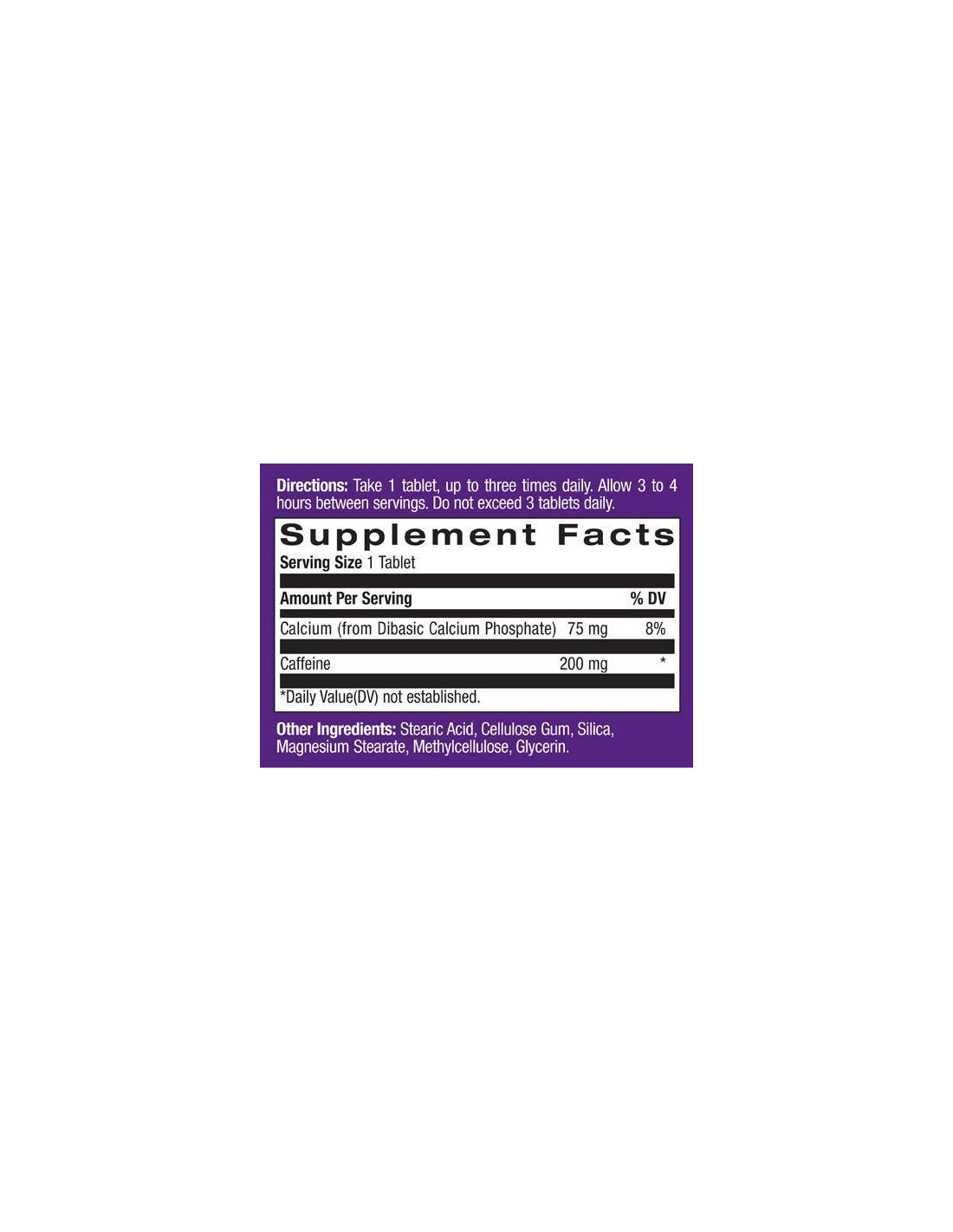 Кофеинът е натурален алкалоид, принадлежащ към групата на метилксантините. Той стимулира дейността на нервната система и има енергетичен ефект. Представлява чудесно допълнение към Вашия спортен и/или психически натоварен режим, тъй като ще Ви осигури повече енергичност и сили, за да постигате целите си, при това – без захар и калории!Начин на употреба : Приемайте по 1 таблетка от 1 до 3 пъти дневно. Осигурете период от 3-4 часа между приемите. Не приемайте повече от 3 таблетки дневно.