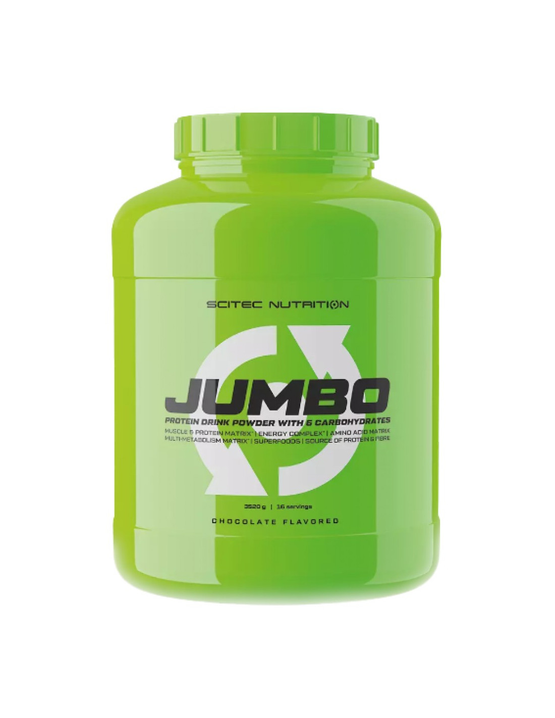 ➡ 50 грама протеин в ДОЗА!➡ ОГРОМНА доза Анаболна Матрица!➡ "6-CARB" карбохидратна матрица съдържаща бързи и бавни въглехидрати!➡ Без изкуствени подсладители!➡ Удобна опаковка!JUMBO означава ГОЛЯМ! JUMBO oзначава СИЛЕН! Научно доказан, че спомага на 100% за покачване на мускулната маса на индивида.С 50 грама протеин от най - високо качество в доза, голяма доза бавни и бързи въглехидрати, това е перфектната формула за качване на МАСА!JUMBO е направен с бързоусвояващ се протеин за да може да се използва както преди, така и след тренриовка, освен това може да го използвате и по време на самото физическо натоварване! JUMBO се усвоява за около 4-6 часа!Начин на употреба : За максимални резултати, приемайте поне по една пълна доза дневно. JUMBO може да се приема както през деня като заместител на хранене, така и около тренировката ( преди, по време на, и след ). Прибавете към всяка мерителна лъжица по около 100 милилитра от любимия ви сок, мляко или вода.