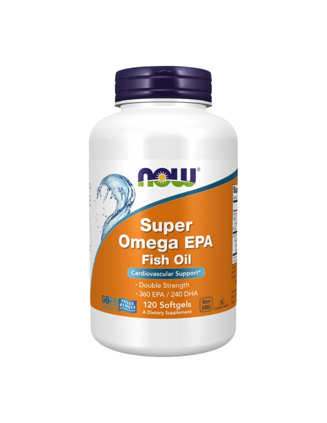 NOW® Super Omega EPA съдържа два пъти повече EPA (360 mg), отколкото в обикновения продукт с концентрация (180 mg). Този концентрат от рибено масло се произвежда при строги стандарти за контрол на качеството. Тестван е да не съдържа потенциално вредни нива на замърсители като PCB, диоксини, живак и други тежки метали. Някои изследвания показват, че консумацията на EPA и DHA омега-3 мастни киселини може да намали риска от коронарна болест на сърцето. Консумацията на EPA и DHA в комбинация може да помогне за понижаване на кръвното налягане и да намали риска от хипертония. NOW Super Omega EPA участва в редица положителни процеси за мозъка и нервната система, засилва паметта и допринася за здравето на сърцето, подвижността на ставите, участва в изграждането на клетъчните мембрани и метаболизма на кръвната захар.Ползите от приема на NOW® Super Omega EPA са : Висока концентрация на EPA и DHA мастни киселини За здрава сърдечно-съдова система Намаляване риска от атеросклероза Понижаване на кръвното налягане Подпомагане на нервната системаНачин на употреба : Приемайте по 2 капсули дневно с храна.