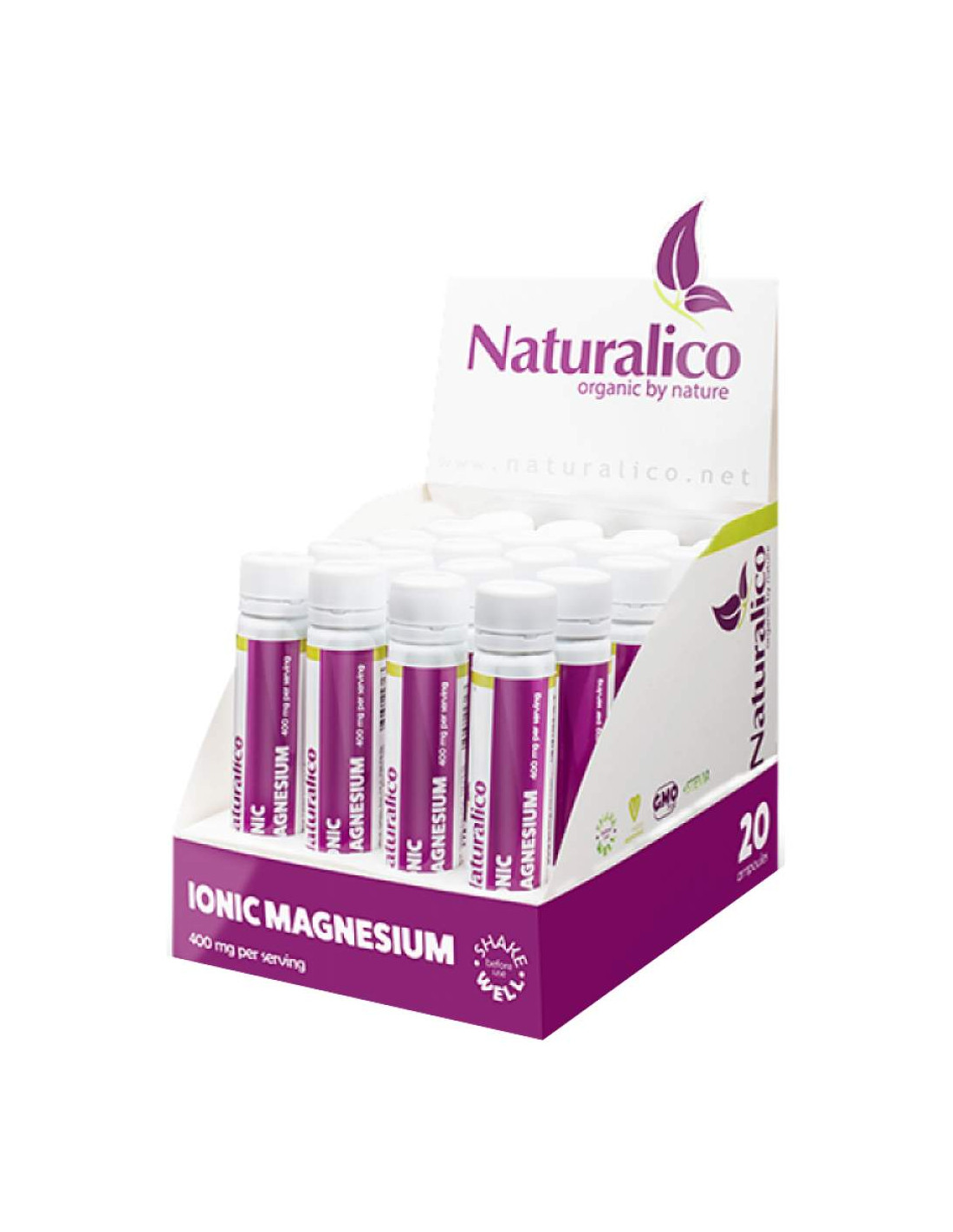 Ionic Magnesium (Йонен магнезий със стевия) Предотвратява появата на мускулни крампи и скованост Укрепва мускулната тъкан и костите Спомага за трансмисията на мускулните и нервни импулси Намалява стреса Обогатен с Борон и витамин В6ВНИМАНИЕ: Не превишавайте препоръчван ата доза. Бременни или кърмещи жени, деца под 18 години и лица с установени медицински състояния трябва да се консултират с лекар преди да използват този или който и да е друг продукт. ПАЗЕТЕ ДАЛЕЧ ОТ ДЕЦА. Не използвайте, ако вътрешното уплътнение на капачката е повредено или скъсано. Хранителните добавки не трябва да се използват като заместител на разнообразното и балансирано хранене.Дозировка: 1 ампулаМагнезият е есенциален минерал, който участва като кофактор в над 300 ензимни реакци в тялото. Той е жизнено важен за предотвратяване на симптомите вследствие на дефицита на минерала в тялото, които често се наблюдават при съвременния човек - спад в имунната система, мускулни крампи и скованост, умора и слабост. Примемът на магнезий укрепва мускулната тъкан и костите, намалява крампите, схващанията и мускулната умора. Изтръпването, взнезапните смени на настроението, липсата на концентрация и промяната в сърдечния ритъм също могат да бъдат преодолени с прием на магнезий.Минералът е особено важен при физическо натоварване и стрес. Той притежава антикатаболен ефект, намалявайки нивото на кортизола. Подпомага възстановяването и предпазва от контузии и служи за превенция. Оптималнте нива на магнезий в тялото благоприятстват здравето на зъбите и костите.Йонната форма на магнезия на Naturalico насърчава здравината и твърдостта на костите и прави зъбите по-здрави. Адекватният прием спомага и за поддържането на калциевия баланс. Минералът благоприятства здравето на черния дроб и мозъка. Магнезият може да действа на кръвно-мозъчната бариера, за да се предотврати навлизането на стресови хормони в мозъка и да се повиши нивото на серотонин, като по този начин симптомите на депресия биват овладяни, а сънят спокоен. Към многобройните ползи на магнезия се причислява и способността му да регулира нервния и мускулния тонус на организма. Той спомага за трансмисията на мускулните и нервни импулси, както и за доброто и пълноценно усвояване на хранителните вещества.Заедно с боронът и витамин В6, магнезиевият комплекс на Naturalico служи за превенция на остеопороза, повишава костната плътност, намалява симптомите на артрит и поддържа скелетната структура силна.Течната му йонна форма използвана в комлекса на Naturalco го прави по-лесно и добре усвоим от тялото. А, проблемите, свързани с прекаленото количество неизползваем продукт са елиминирани.Ролите на магнезия в тялото: Здрави зъби и кости Релаксиране на нервната с-ма и мускулите Подобрена функция на мозъка и черния дроб Подобрен сън Контролиране на нивата на холестерол По-добро усвояване на хранителните вещества от организма Активация на важни ензими Поддържане на добро настроение и контролиране нивата на стрес Облекчение на предменструални болки и неразположение Насърчаване на здравето на сърдечно-съдовата с-ма и спомагане за поддържане на стабилен сърдечен ритъм Подобрена мускулна функция Превенция срещу мускулни спазми и скованост Помага за постигане и поддържане на калциев баланс в тялото Контрол над нивата на кръвната захар и инс