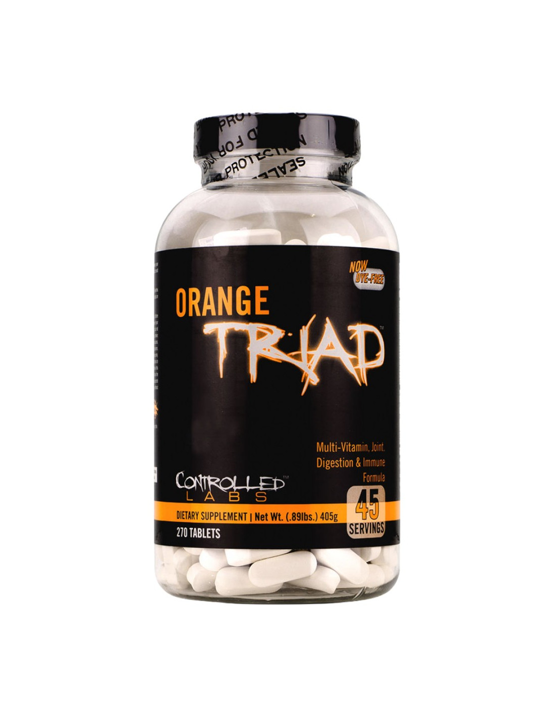 ➡ Комплекс от витамини и минерали➡ Подобряване на възстановяването➡ Повишаване на тонуса➡ Премахване на чувството за отпадналост➡ Добавен комплекс за стави и хрущяли➡ Добавен комплекс за стимулиране на имунната система➡ Достатъчен за 45 дни ORANGE TRIAD е продукт, който комбинира най-необходимите и ефективни витамини и минерали и нутриенти, които подкрепят храносмилателната система, имунната система и ставите и хрущялите. Продуктът предназначен за прием два пъти дневно, като една доза се разделя на 2.ORANGE TRIAD е разработен за активно спортуващи атлети. Това, което отличава сериозно занимаващите се със спорт е, че те умишлено се подлагат на невероятни натоварвания. Това е разбираемо, защото само по този начин могат да се постигнат големи резултати. Тялото има капацитет, който въпреки огромното желание не може да бъде променен. С времето имунната система се изтощава, мускулите, сухожилията и ставните връзки не могат да се възстановяват толкова лесно и бързо, което неизмено значи намаляване на темпото, при което и резултатите страдат.ORANGE TRIAD е продукт, който решава този проблем, тъй като снабдява тялото с хранителните вещества, от които се нуждае за да бъде винаги на ниво. ➡ JOINT и Flex Complex спомага за добро здраве на ставите и сухожилията, предпазва ги от износване и ги прави готови да се справят с тежките натоварвания; ➡ DIGESTION и IMMUNE комплекс включват естествени съставки, които притежават противовъзпалителни свойства, подобряват храносмилането и подобряват функцията на организма като цяло.Начин на употреба : 3 таблетки със първото и 3 с последното хранене.