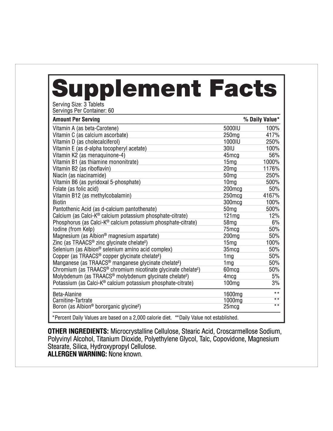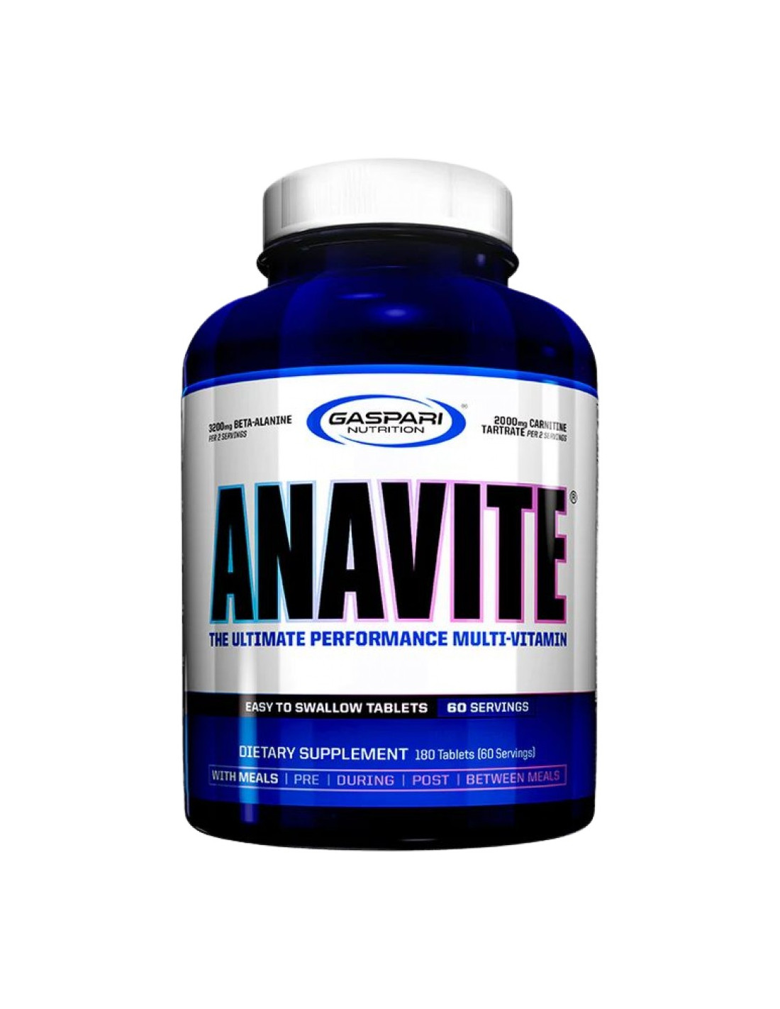 Последното нещо, което трябва да си помислите за ANAVITE e, че е "поредната" хранителна добавка. Новият продукт на Gaspari Nutrition е плод на дълготрайни проучвания в областта, в която марката досега нямаше представител в сегмент "Мултивитамини". ANAVITE представлява три продукта в един. Продуктът представлява витаминен комплекс със силно затъпени дози подходящи за трениращи и атлети, практикуващи спорт на професионално ниво обогатени с валидирани дози Бета-Аланин и Carnipure ™ (Ел-Карнитин Тартрат) за значително увеличаване на издръжливостта и нивата на азотен оксид като същевременно намаляват времето за възстановяване, необходимо му на организма, като по този начин оптимално увеличават аеробните и анаеробните спортни постижения. До краен предел зареден с високо биоактивни витамини като methylcobalamin и силни минерали като methylselenocysteine, вие ще УСЕТИТЕ ANAVITE от първата доза!За да вдигнат от Gaspari Nutrition още по високо летвата в сегмента, те обогатяват витамините си с 2 грама в доза Carnipure ™ (Ел-Карнитин Тартрат), които в научни изследвания показва положителни ефекти като вдигане на нивата на азотен окис и увеличаване гъстота на андрогенните рецептори. Накрая, докато всичко компания дозират слабо Бета-Аланина в своите продукти или го изключват изцяло, ANAVITE включва в себе и 3 грама дневно доза от тази силна аминокиселина, която в изследвания от десетолетия наред показва засилване и в аеробната и анаеробната подготовка и постижения на спортистите. Това означава само и единствено едно - благодарение вече на ANAVITE, вие може да тренирате по - здраво и по - дълго от всякога!Начин на употреба : Приемайте три таблетки 1 до 2 пъти дневно с храна. Да не се приема от деца. Да не се превишава дневната препоръчителна доза. Като всяка друга добавка, ако приемайте лекарства, консултирайте се с лекар преди употреба.