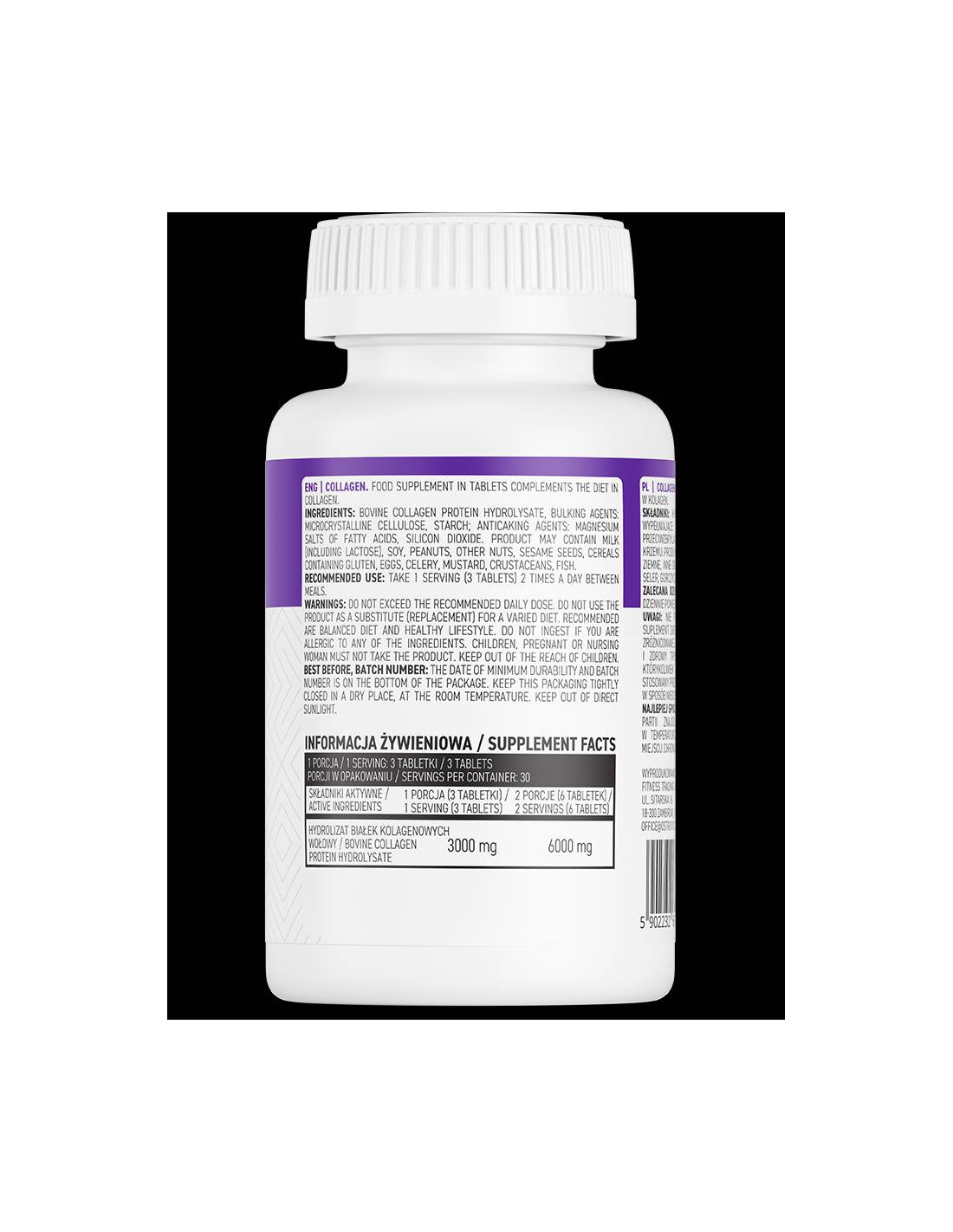 OstroVit Collagen е вещество, което е естествено, намиращо се в тялото. Всъщност, това е вид протеин, който играе роля за поддържане на ставните тъкани, сухожилия, хрущяли. Той също така е вещество, което помага за еластичността на кожата.OstroVit Collagen е един от най – разпространените белтъци във вашето тяло, което обяснява неговата важност. Съдържанието му в отделните органи варира от около 25% в костите, до 75% в кожата. Колагена е естествен компонент на кожата, косата, ноктите, костите, съединителната тъкан, ставния хрущял, скелетната мускулатура, стените на кръвоносните съдове, бялата част на окото (склера) и др. Ето защо, неговото намаляване води до заболявания и стареене именно на тези части. Чрез OstroVit Collagen, артритните възпаления ефективно се облекчават, освен това се възстановява и защитава ставния хрущял.OstroVit Collagen укрепва кръвоносните съдове и има важна роля в развитието на тъканите. Именно поради тази причина, допълнителния прием на OstroVit Collagen, може да забави видимите признаци на стареенето, като изглади фините линии и бръчки, и тонизира и заздрави косата и ноктите. Тъй като колагена редуцира мазнините в тялото, продукта течен колаген е подходящо средство за управление на теглото.OstroVit Collagen е отговорен за поддържане на нашата съединителната тъкан като хрущяла, ставните връзки и сухожилията. Една от причините за нашите стави да са склонни да станат твърди и болезнени, поради процеса на стареене е така, защото ние като пораснем, нашата продукция на колаген се забавя.Липсата на OstroVit Collagen в целия организъм причинява скованост и болки в ставите и мускулите, особено при хората на възраст. Спомага за намаляване болките и сковаността на ставите Спомага за облекчаване на артритните възпаления Поддържа еластичността на кожата, забавяйки нейното стареене Заздравява косата и ноктите, и стимулира растежа им Съдейства за изграждане на чиста мускулна маса Напълно натурален продукт 3000 мг съдържание на хидролизиран колаген в дозаНачин на приемане:една доза на ден, на гладно.