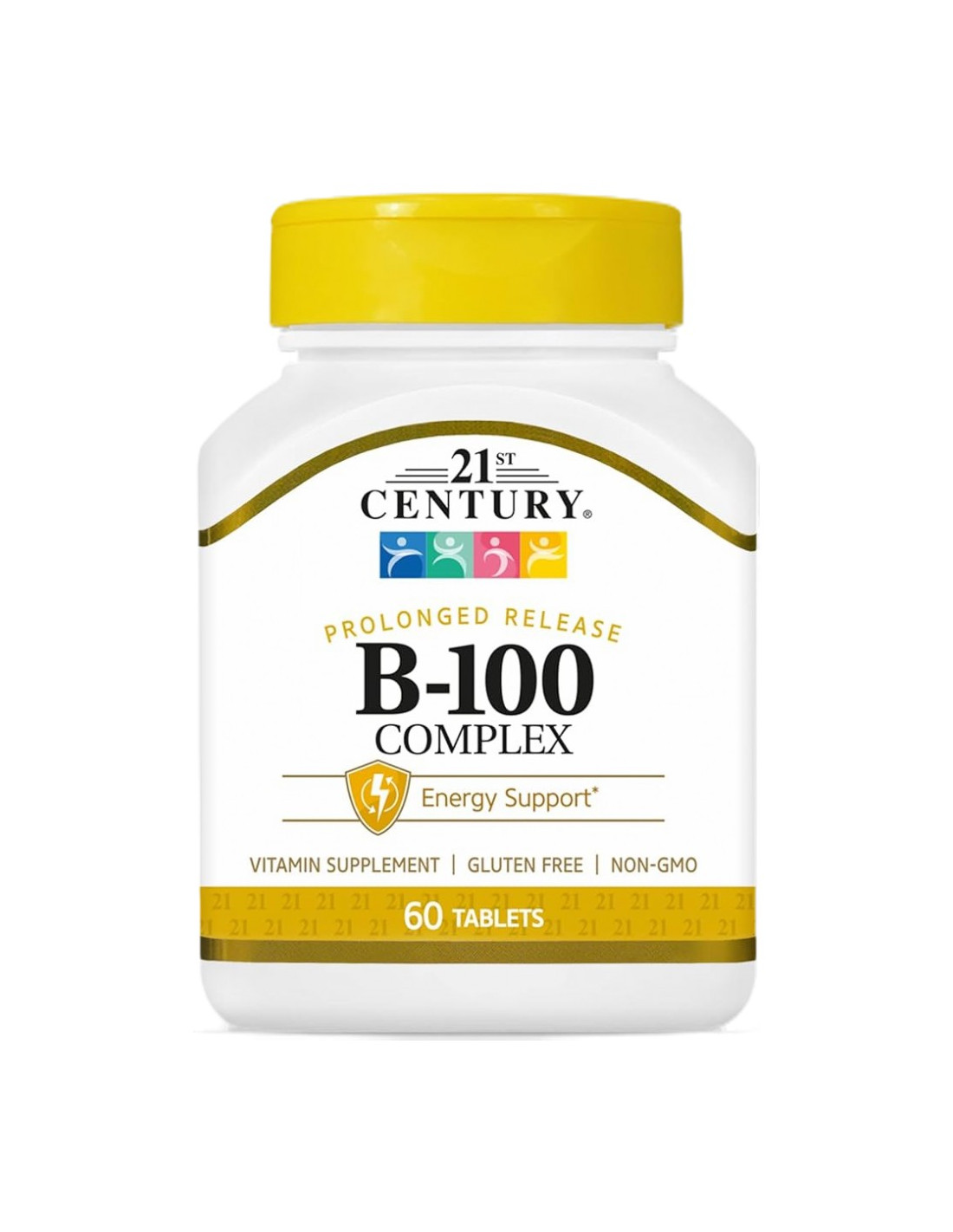 21st Century B-100 Complex Prolonged Release е висококачествена добавка, която осигурява оптимална доза от основните витамини от група B. Създадена с формула за продължително освобождаване, тази добавка гарантира, че тялото ви получава постоянна подкрепа през целия ден.Основни предимства:Енергия и метаболизъм: Витамините от група B са ключови за производството на енергия и нормалното функциониране на метаболизма. Те помагат за превръщането на храната в енергия, която тялото може да използва ефективно.Поддържане на нервната система: Витамините B1, B2, B6 и B12 играят важна роля в поддържането на здравето на нервната система, намалявайки стреса и подобрявайки настроението.Укрепване на имунната система: Витамините B-комплекс също така подпомагат имунната система, като осигуряват необходимите нутриенти за оптимална защита на организма.Удължено освобождаване: Формулата за удължено освобождаване гарантира, че витамините се освобождават постепенно в организма, осигурявайки дълготрайна подкрепа и максимална ефективност.Подходящ за вегетарианци: Този продукт е подходящ за вегетарианци, тъй като не съдържа животински продукти, което го прави идеален избор за тези, които следват вегетарианска диета.21st Century B-100 Complex Prolonged Release е създаден да ви осигури необходимата енергия и подкрепа, която ви е необходима, за да се чувствате здрави и активни всеки ден. Тази висококачествена добавка е идеален избор за всеки, който иска да поддържа оптимално здраве и благополучие.Купете сега и осигурете на тялото си пълната гама от витамини B за максимална енергия и здраве!Начин на употреба: Приемайте по една таблетка дневно с храна или според предписанията на здравен специалист. Всяка опаковка съдържа 60 таблетки, достатъчни за двумесечен прием.