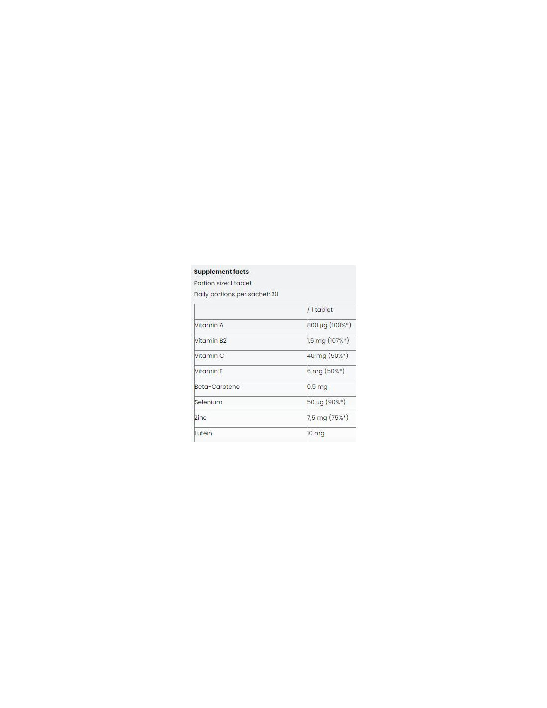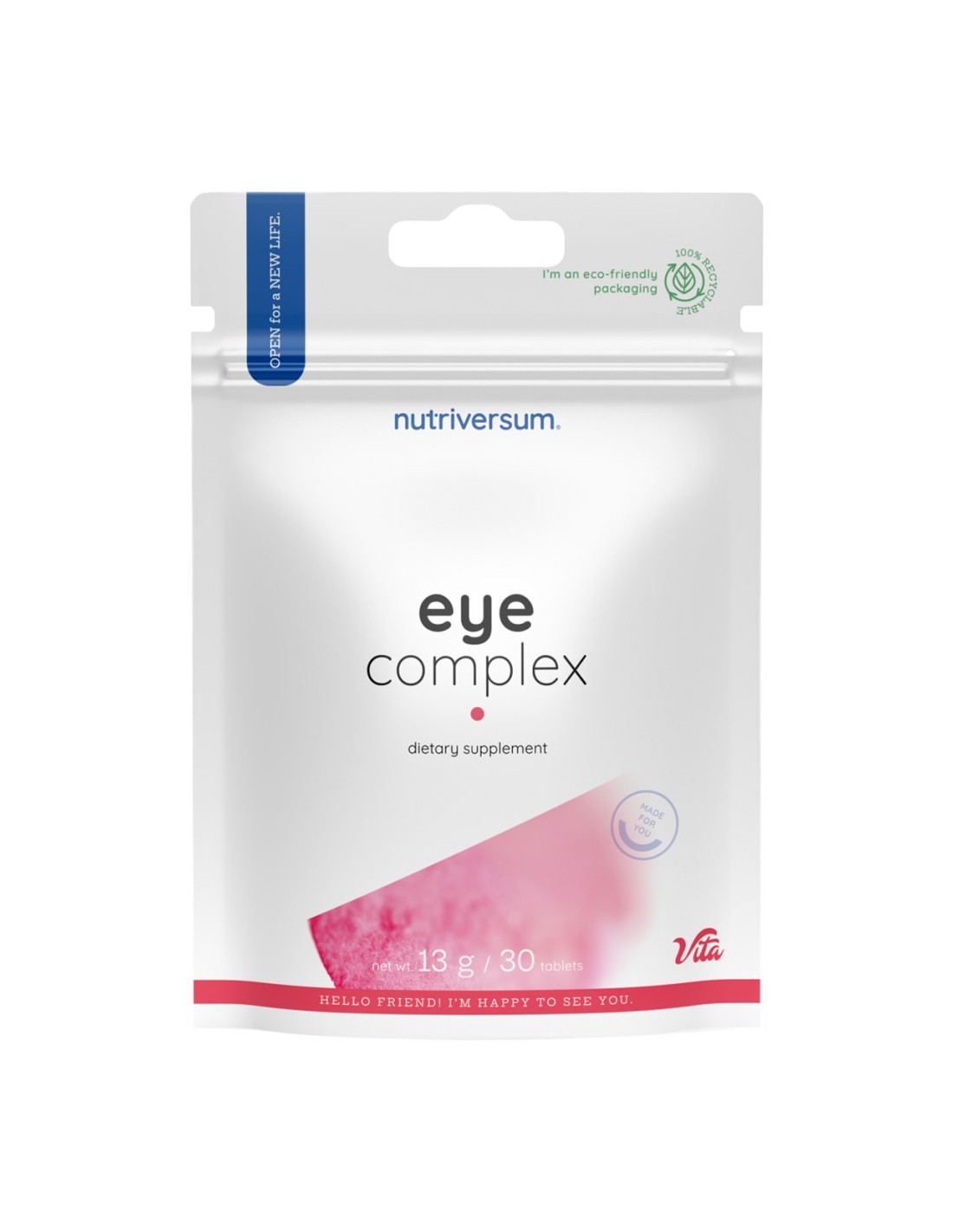 Eye Complex е добавка с поддържащи здравето на очите съставки и високо съдържание на агент. Една от основните съставки е лутеинът, който е един от основните изграждащи елементи на окото и ретината. Страхотното допълнение към съставката е бета каротинът, който се счита за най-добрия източник на витамин А. А за да направим продукта още по-добър, ние го допълнихме с витамин B2, C, E, селен и цинк.Подходящ за хора, които: търсят продукт за поддържане на здравето на очите имат нужда от добавка с лутеин и бета каротин поради медицински причини искат да открият всички поддържащи ефекти, които има този комплексен продукт!Опитайте го и се уверете сами!Начин на употреба:Приемайте една порция (1 таблетка) с първото или последното си хранене с много вода!