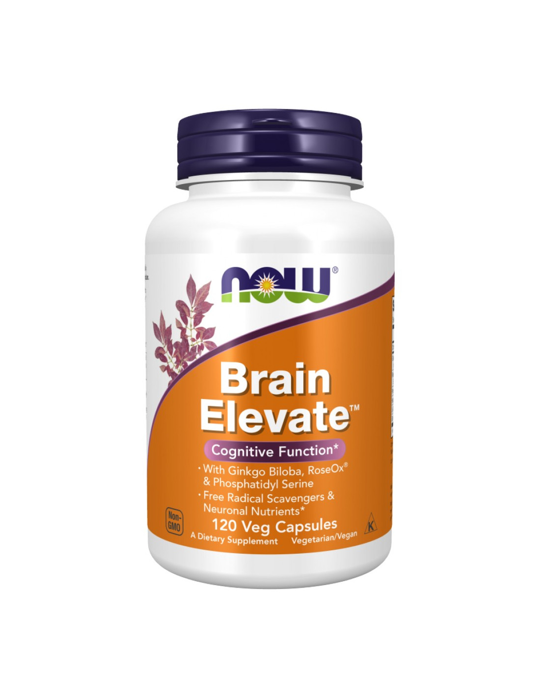 Поддържа мисловните процесиПодобрява фокуса и концентрациятаИзостря вниманиетоПодобрява способностите на паметтаВегетарианска формулаNOW® Brain Elevate™ е формула, която придава мощна подкрепа за мозъка, подобрява мисловните процеси, повишава фокуса, концентрацията и подобрява когнитивната функция. Brain Elevate е оптимално балансирана комбинация от най-потентните съставки, които максимално повишават продуктивността на мозъчната дейност.Две от съставките в Brain Elevate – Huperzine A и RoseOx® са добре познати със своите антиоксидантни свойства, те предоставят стабилна защита на клетките на нервната система.Съставката Huperzine A има способност да потиска ензима ацетилхолинестераза, който разгражда ацетилхолина, който се свързва способностите за запаметяване. Потискането на този ензим повишава нивата на ацетилхолин, който може да стимулира повече неврони и да подобри значително паметта. Болестта Алцхаймер се характеризира с недостиг на ацетилхолин.RoseOx® е патентован мастноразтворим екстракт от розмарин, който е постижение в индустрията на хранителните добавки. Последните проучвания показват, че розмарина съдържа мощни мастно-разтворими антиоксиданти, които могат да потиснат и да неутрализират свободните радикали в тялото. Мастно-разтворимостта на този антиоксидант го прави отличен протектор на клетките на нервната система.Екстрактът от Ginkgo Biloba във формулата разширява капилярната мрежа обграждаща мозъка и повишава кръвопотока към нервната тъкан, в резултат на което се увеличава и достъпа на кислород и хранителни вещества към клетките. Ginkgo Biloba е отличен стимулатор на способностите на паметта.Фосфадитил серин (Phosphatidyl Serine) подсилва паметта, повишава концентрацията и бдителността, подобрява запаметяването, облекчава симптоми на депресия и подобрява настроението, понижава стреса, потиска образуването на кортизол вследствие от прекомерен стрес.В днешния свят, забързаният начин на живот оказва своето влияние и постепенно изтощава човешкия организъм. Мозъкът е най-важната система в човешкото тяло-тук се намира най-необяснимото нещо в живия свят-човешкия интелект. С времето, мозъкът се изтощава и намалява своята продуктивност. Brain Elevate от NOW® Foods е протекторът, горивото от което се нуждае човешкия мозък, за да бъде той в отлично здраве.Начин на употреба: Една доза 1-2 пъти дневно.